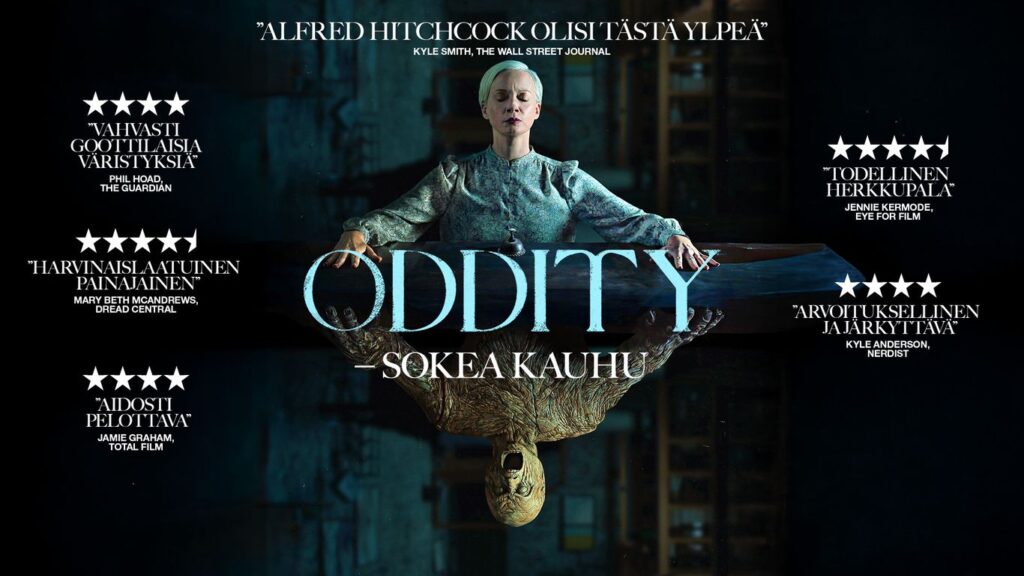 Oddity – Sokea kauhu kasvaa painajaiseksi, jossa arjen kauhut ja yliluonnollinen törmäävät täysin poikkeuksellisesti. Kylmäävä pelko tunkeutuu huokosista ihon alle, kun mysteerin kerroksista paljastuu yhä uusia yllätyksiä.